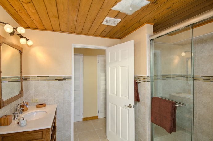 The master bedroom and second bedroom are located on the main level, each with an ensuite bathroom. The master bedroom has a king-size bed and a corner bath, while the second bedroom has two twin beds that can be made up as a king. The lower level and pool deck are accessed by exterior stairs. This level features two more bedrooms, each with an ensuite bathroom. One of these bedrooms can be unlocked to access directly from the pool deck. The pool deck is the perfect place to relax and soak up the sun. There are sun loungers, a shaded dining area and a barbecue grill.