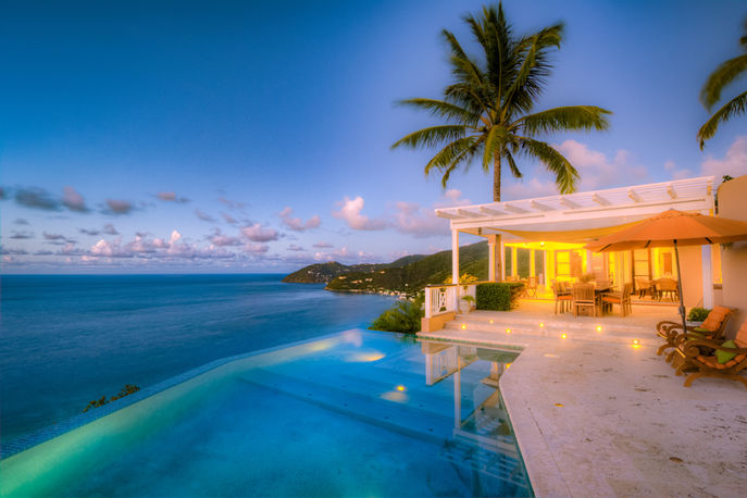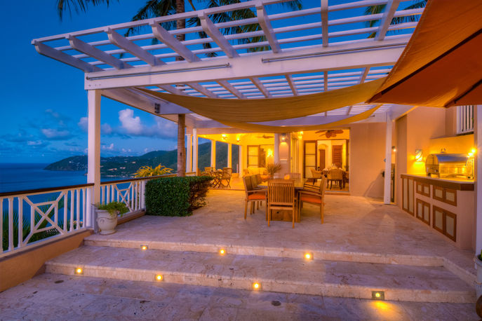Perched in the hills above Long Bay, Papaya Villa offers stunning views of the North Shore, Jost Van Dyke, Sandy Cay and Green Cay. With a versatile floor plan, infinity pool and a large covered porch, the villa is the perfect place to relax and enjoy the Caribbean lifestyle. The villa features a gourmet kitchen, indoor and outdoor dining/living areas and a formal dining room. The outdoor kitchen has a gas-fired barbecue, pizza oven and Indonesian hand-crafted dining table set under a shaded pergola.