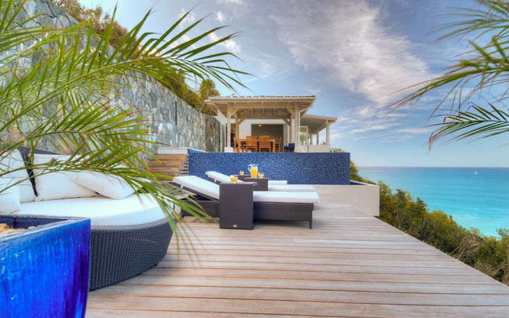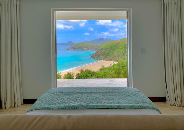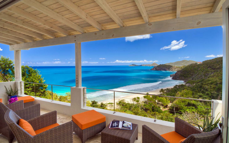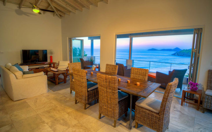 Villa Soleil, a luxury vacation villa on Tortola's North shore, boasts 3 bedrooms, 2.5 bathrooms, and 2 outdoor stone showers. With options of King, Queen, or bunk rooms, it accommodates 6 adults and 2 children, each enjoying private balconies with mesmerizing ocean views.Villa Soleil is perched on the tropical hillside, overlooking Trunk Bay, an untouched beachfront with some of the most pristine water and sand on the island.